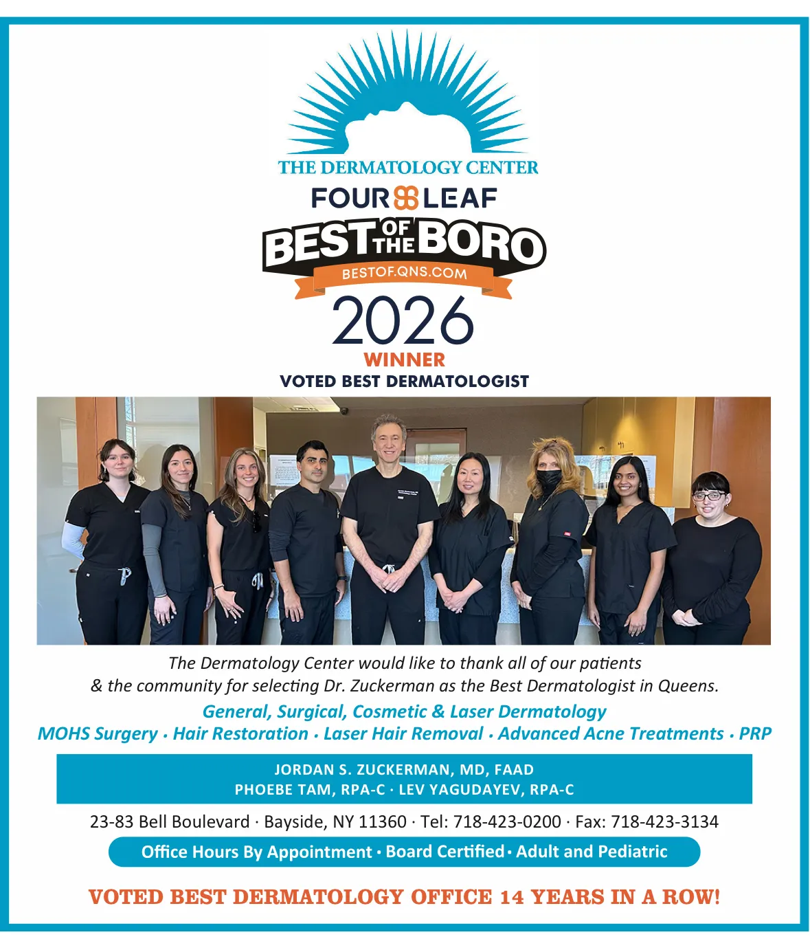 VOTED BEST DERMATOLOGIST IN QUEENS 13 YEARS IN A ROW